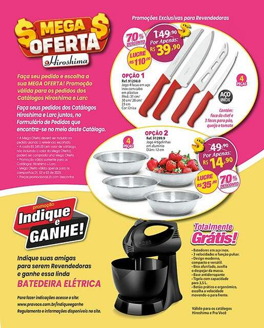 • Válido para pedidos dos Catálogos Hiroshima ou Pra Você desta edição que acaba de receber.